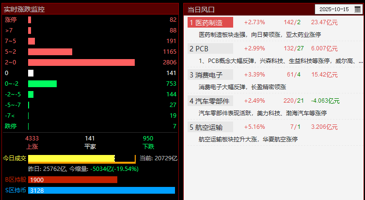 市场探底回升,沪指重回3900点,创业板指探底回升涨超2%。沪深两市成交额2.07万亿,较上一个交易日缩量5034亿。盘面上,市场热点轮番活跃,早盘医药、大消费活跃,午后机器人概念、消费电子爆发。