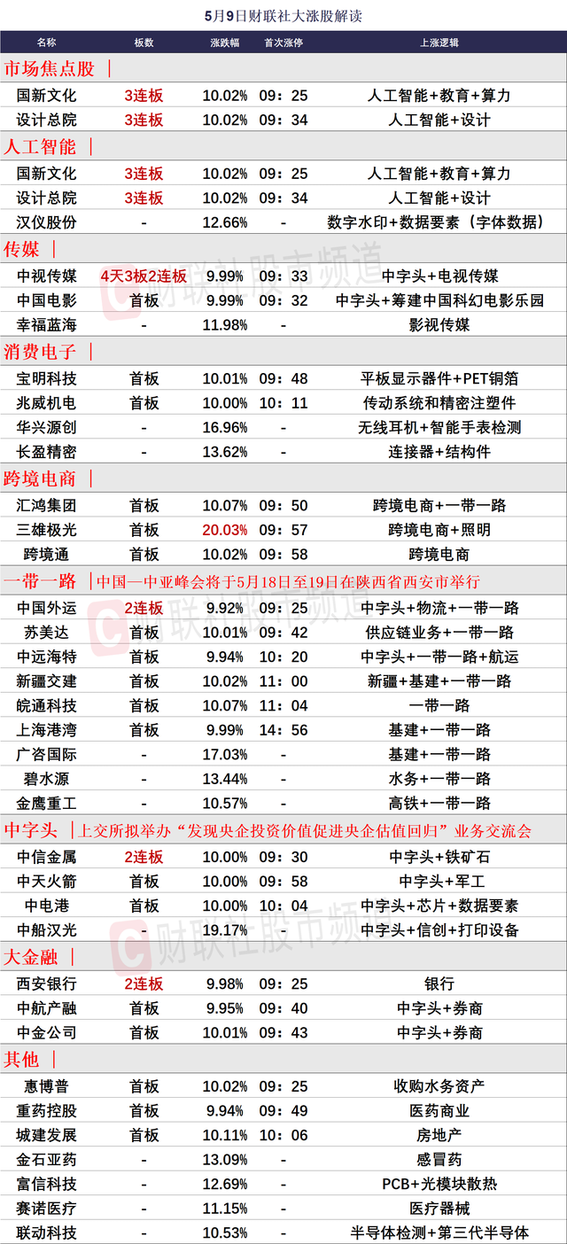 4、中字头板块持续活跃,消息面上,上交所拟于5月11日召开“发现央企投资价值 促进央企估值回归”交流会,浙商证券称,当下,ROE指标进入指标体系叠加国企改革新行动蓄势待发,后续可以期待国企ROE的改善,从而形成对中特估行情延续的支撑。
