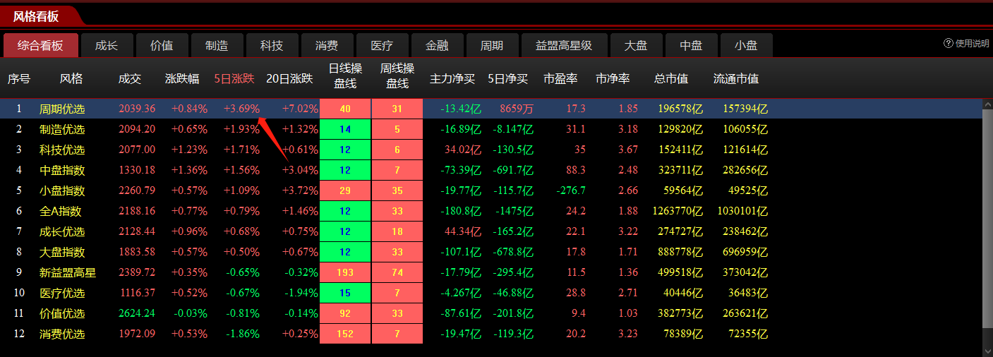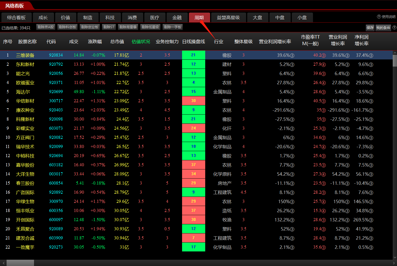 基于此逻辑,我们设定三个量化标准,在风口看盘-周期中进行筛选:
